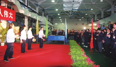 4月10日晚,中航工业洪都钣金加工厂厂房歌声嘹亮,洪都海燕文工团正在为一线加班的干部职工进行慰问演出。幽默风趣的三句半《三次创业从头越》、振奋人心的《咱们工人有力量》……虽然只有短短四个曲目,但这场短小精彩的文艺演出为这些奋战在一线的干部职工带来了欢乐。洪都公司广大干部职工目前正在决战高教机项目。为进一步鼓舞士气,推进高教机的研制生产进程,文艺演出前,公司举行了高教机项目“狼团队”攻关授旗仪式,中国航空报社社长肖治垣应邀为攻关队授旗。