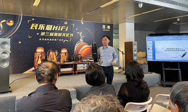 本次赏析会还邀请了中央音乐学院教授王磊等三位嘉宾,由他们带领读者使用HiFi设备欣赏民族管弦乐馆藏,同时还讲解了民族乐器背后的故事,读者不仅与艺术家可以面对面交流,还能现场体验黑胶唱片、CD、mp3等不同介质的音乐效果。此外为了满足发烧友对器材的需求,专门设置了器材体验环节。