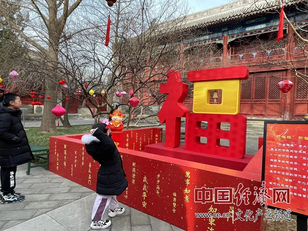 元旦当天,观众走进张灯结彩的大钟寺古钟博物馆,不仅聆听到浑厚悠扬的永乐大钟钟声、体验非遗传统技艺、购置年货、品尝老北京风味美食、与博物馆IP人偶互动,还参与了抽取2025“好铃”祈愿卡、“打福眼”等互动活动,在博物馆丰富多彩的文化体验中,度过了一个文化内涵丰厚、年味十足的元旦新年。