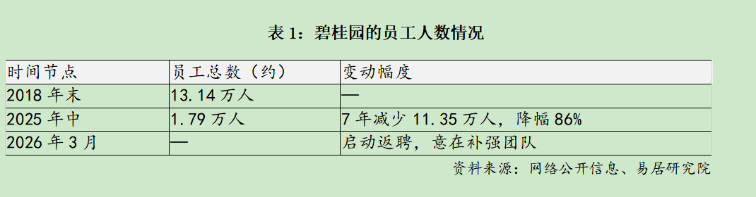 据严跃进分析,碧桂园此次启动大规模返聘,是其经历深度调整后,经营重心发生实质性转变的明确信号。公开数据显示,公司员工总数已从2018年末的约13万人锐减至去年底的约2万人,减员幅度超过80%。这一数据直观地反映出,在过去几年的行业深度调整期,企业为求生存不得不采取极致的缩表策略与降本增效措施。本质上,这背后折射出的,是房企出险后经营秩序被彻底打破的现实困境。