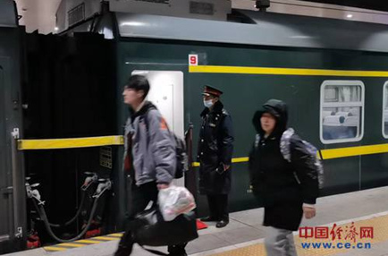 今年春运北京地区开行的第一趟临时旅客列车K5207次等待发车。(中国经济网记者佟明彪/摄)