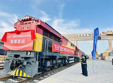 采用铁公联运新模式出口的班列从乌鲁木齐发车。(中国铁路乌鲁木齐局集团公司供图)