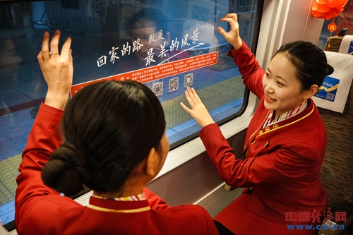 铁路北京客运段京广高铁车队在担当的G337次的列车上开展了“回家的路就是最美的风景 温暖回家路”活动。