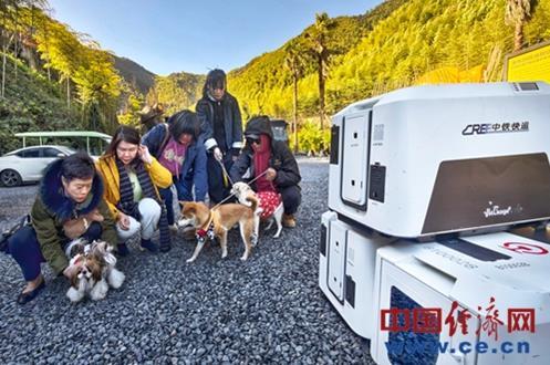携宠游客到达景区准备游玩。(杨宝森/摄)