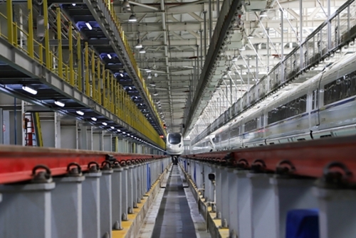 动车组机械师提前启动“全员练兵”工作,守牢高铁运行安全的“车辆防线”。 中国经济网记者 魏金金 摄