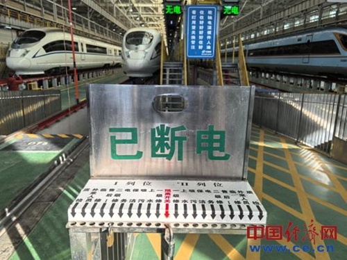 接触网断电后,正在检修的动车组。 中国经济网记者 魏金金 摄