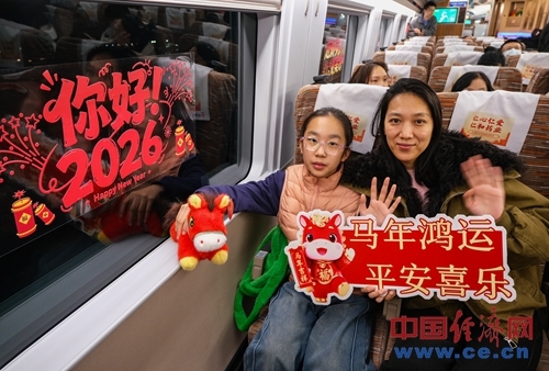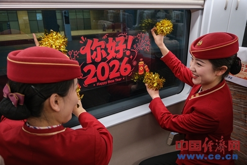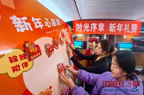 为让往返京津两地的旅客在旅途中感受浓厚新年氛围,乘务人员表演欢快的舞蹈等文艺节目,与旅客进行互动问答,邀请旅客写下新年心愿,并送上精心准备的新年礼物与节日祝福,陪伴旅客一同迎接2026新年到来。(中国经济网记者 佟明彪 通讯员 刘超)