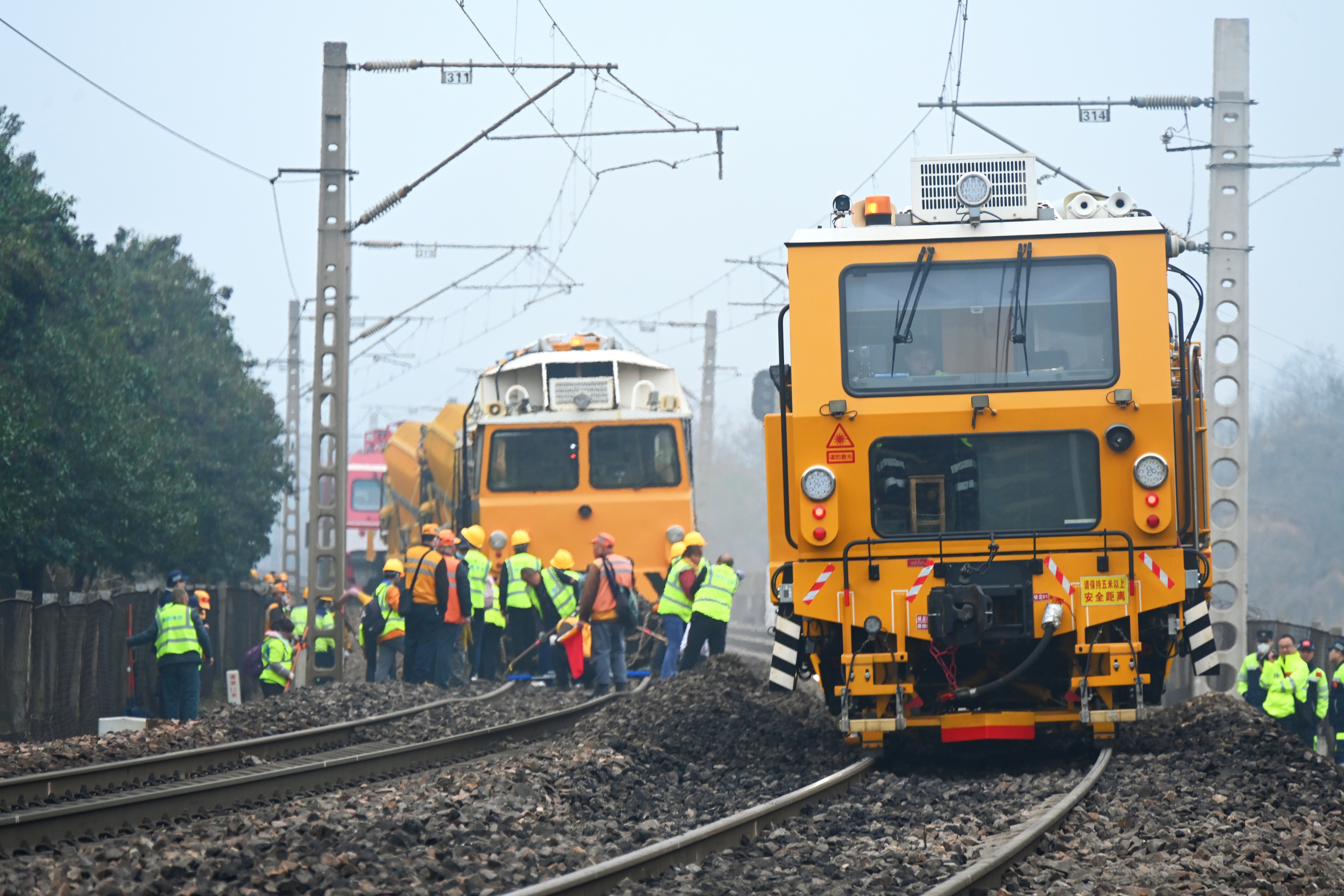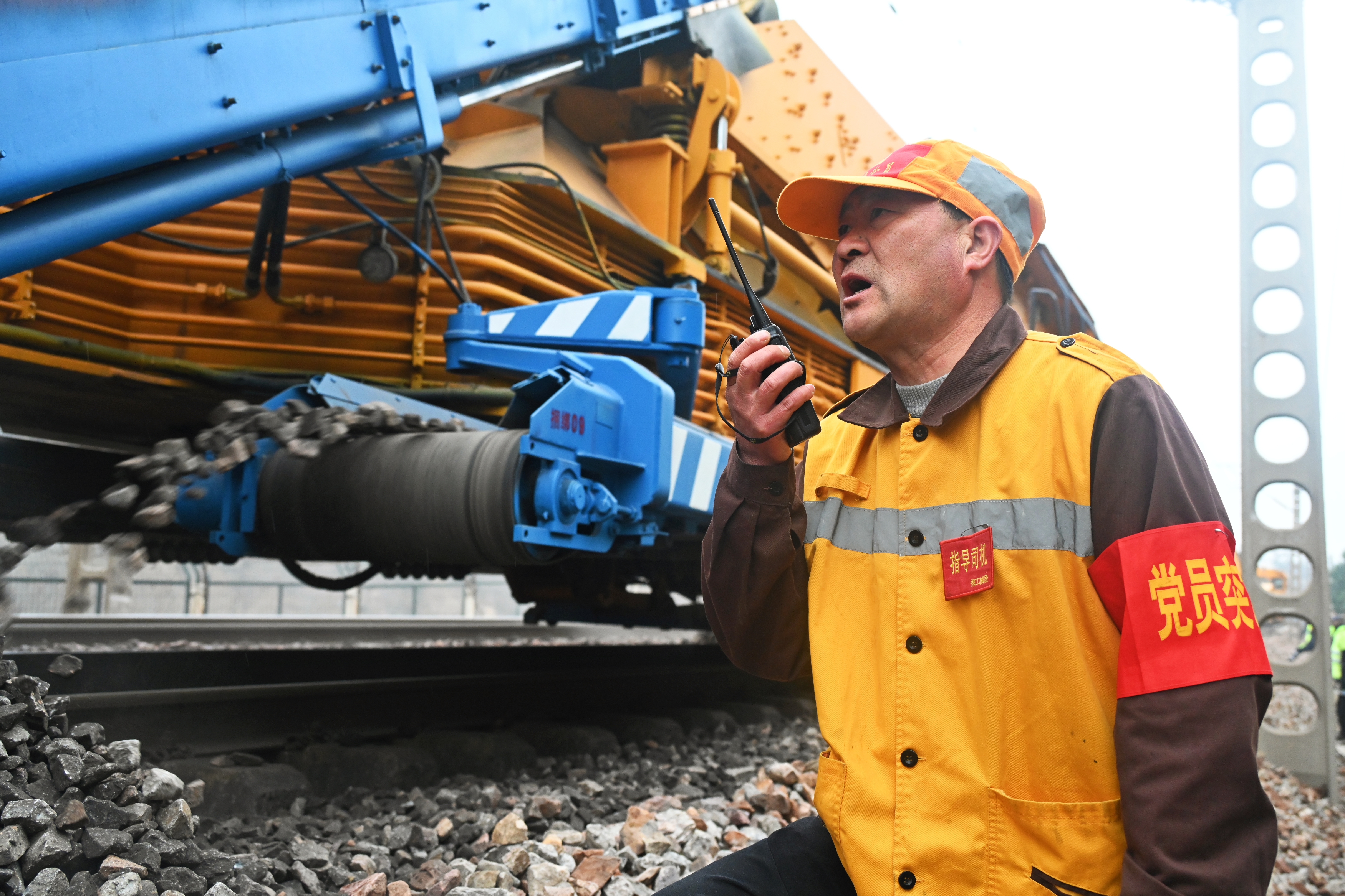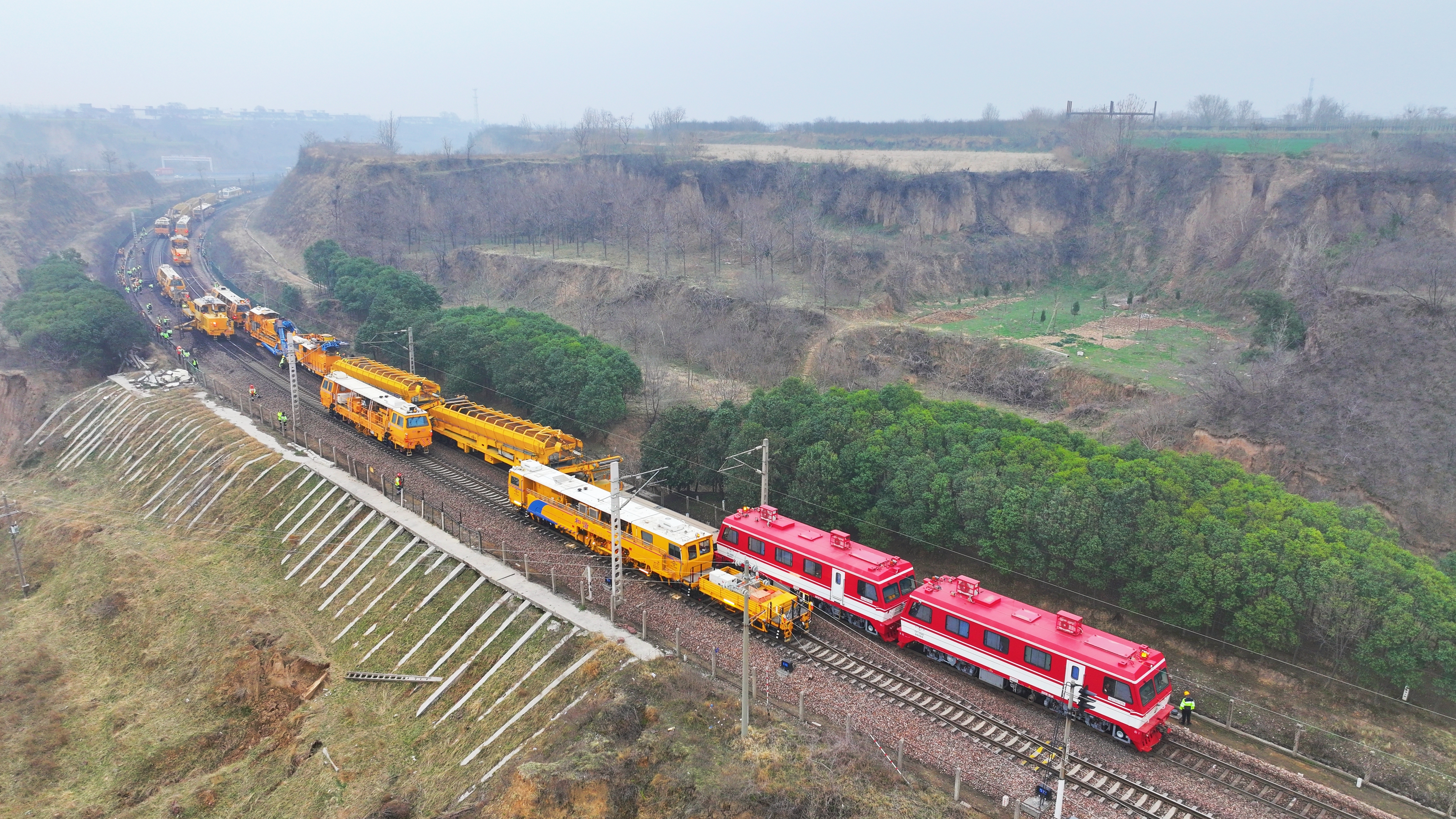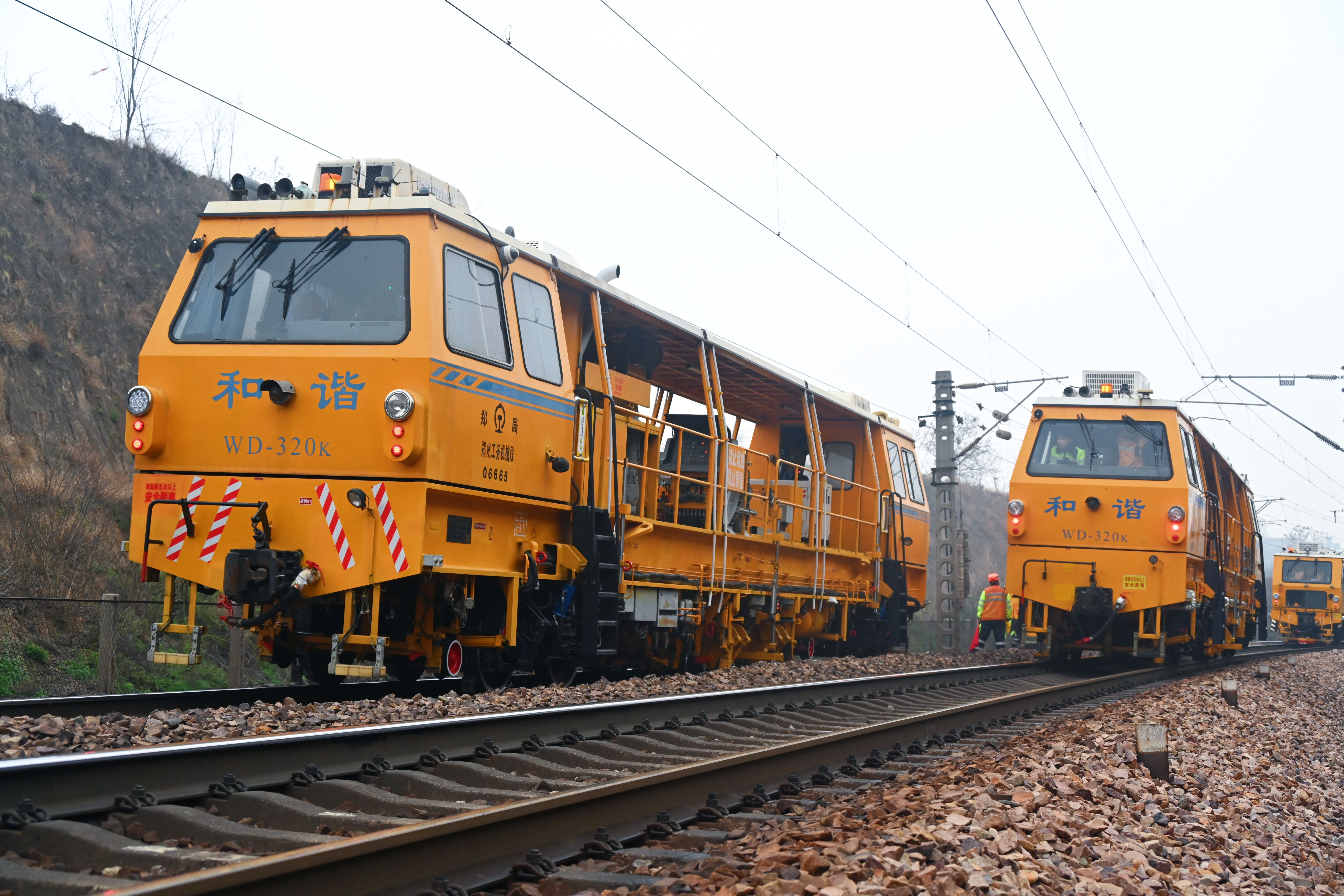 在陇海线上街站至巩义东站区间施工现场,大型养路机械配合作业人员有序作业。祁映辰 摄
