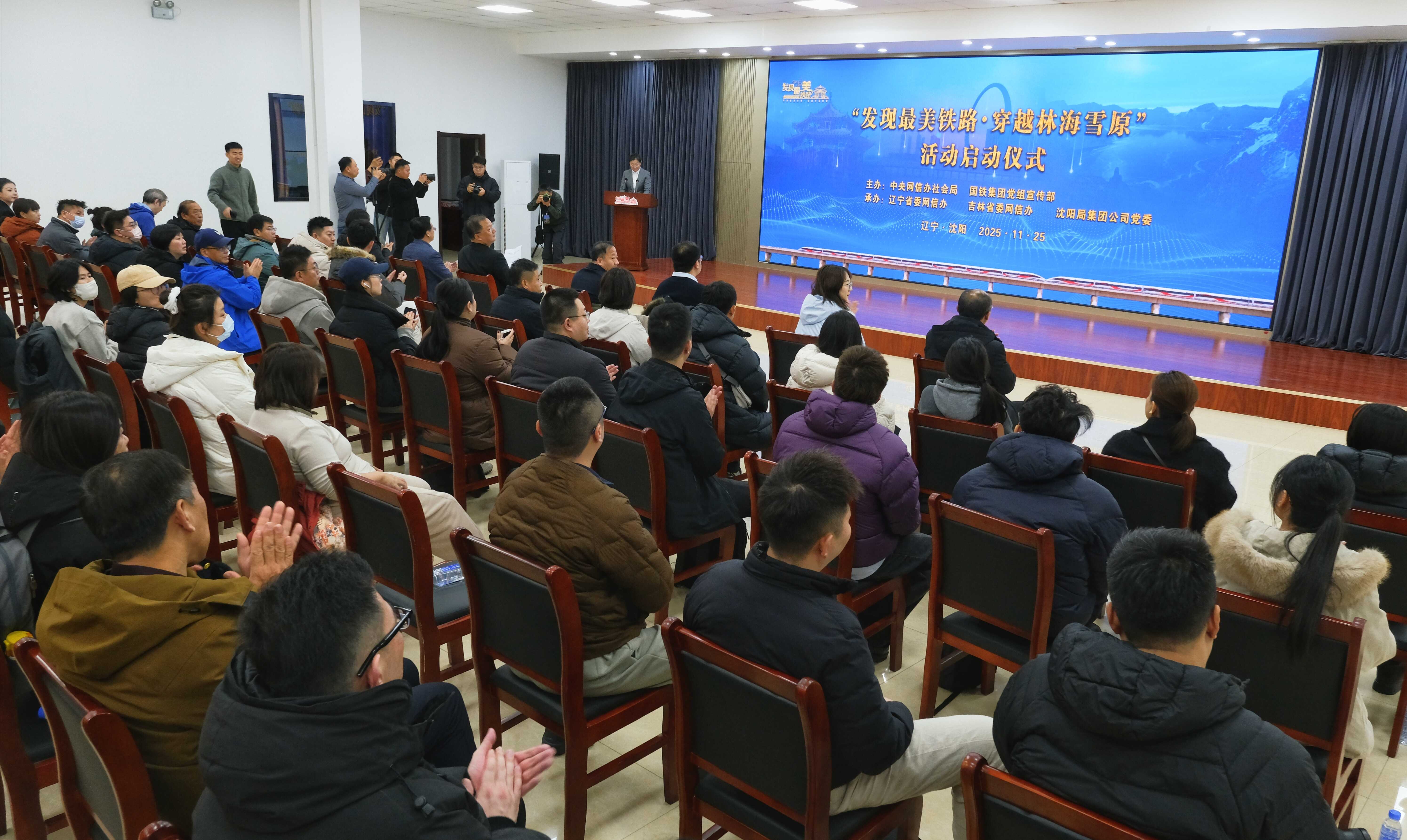 中国经济网沈阳11月25日讯(记者 佟明彪)11月25日,由中央网信办网络社会工作局、中国国家铁路集团有限公司党组宣传部联合主办,辽宁省委网信办、吉林省委网信办、中国铁路沈阳局集团有限公司党委联合承办的“发现最美铁路·穿越林海雪原”主题网宣活动启动仪式在沈阳高铁基础设施段举行。