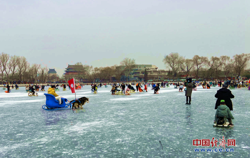 抓住冰上活动的“尾巴”,市民在什刹海冰场欢乐游玩。