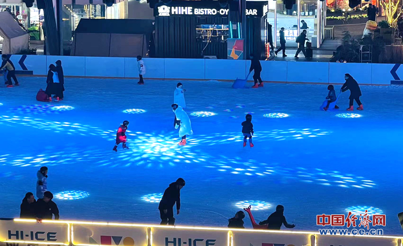 虽已华灯初上,华熙冰场仍充满快声笑语。
