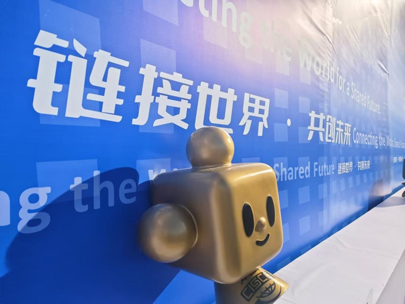 链博会吉祥物“链氪”。中国经济网王婉莹/摄