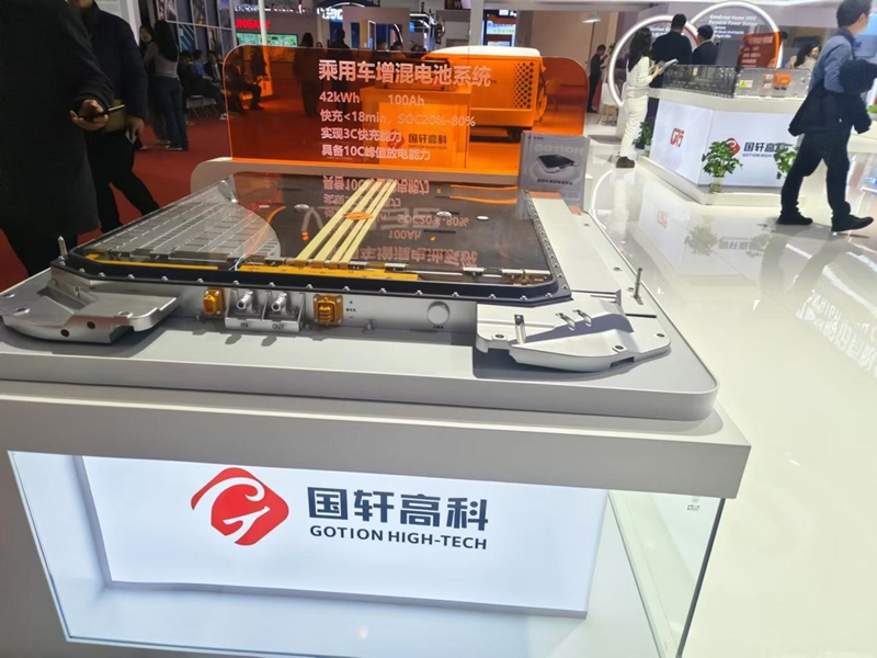 国轩高科乘用车增混电池系统。中国经济网王婉莹/摄