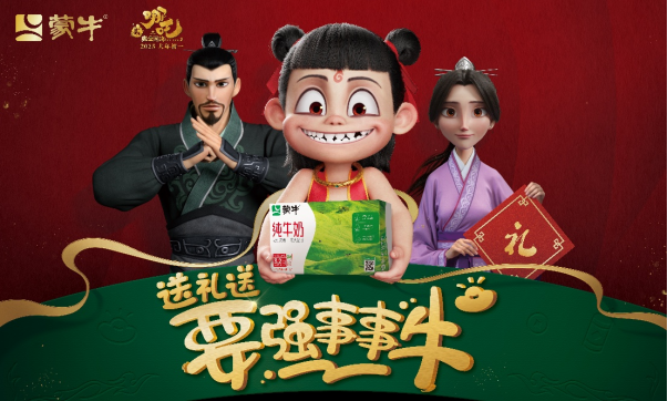 2020年春节,蒙牛与《哪吒之魔童降世》电影制作团队原班人马合作,携手打造春节国漫贺岁片《蒙牛送营养 新年更要强》,集结了哪吒、姜子牙等众多国漫电影人物。随后的五年时间里,蒙牛也与哪吒电影创作团队长期陪跑、互相托举,五年磨一剑,成就了《哪吒2》的王者归来。