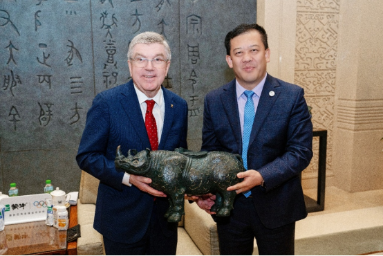 今年2月份,蒙牛集团总裁高飞与国际奥委会主席巴赫在中国国家博物馆相聚时,高飞还向巴赫赠送了一份特别的礼物——一尊仿西汉时期的错金银云纹铜犀尊。这尊青铜器,承载着深厚的历史底蕴,成为连接奥林匹克文化与中国文化的桥梁。