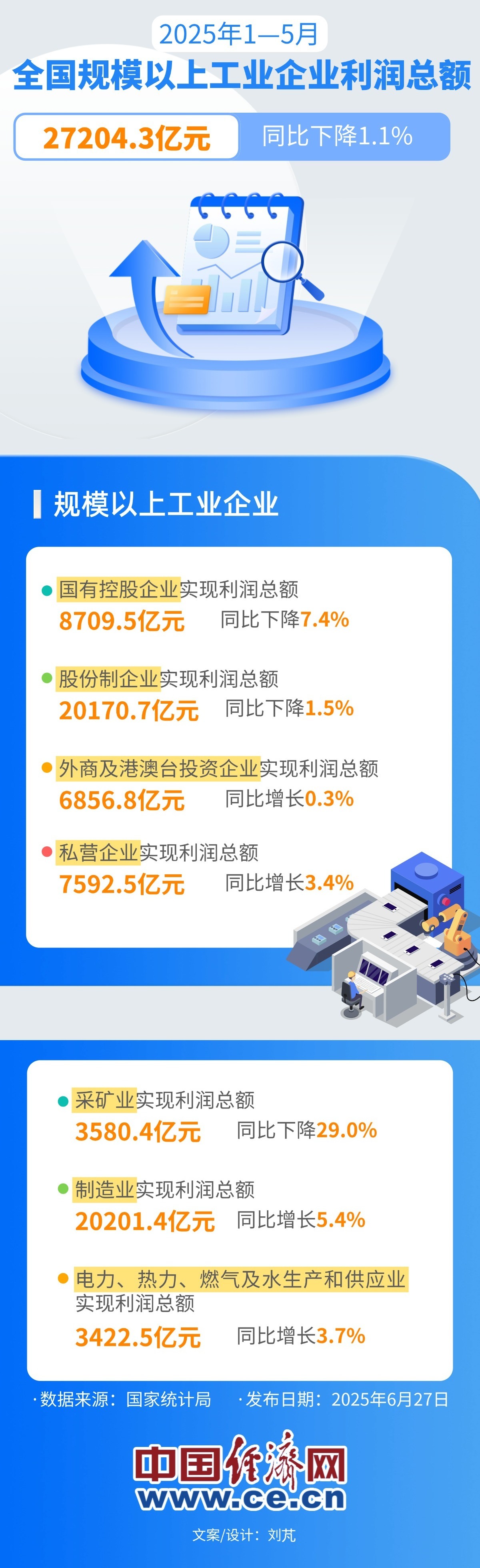 【图解】1—5月份全国规模以上工业企业利润下降1.1%