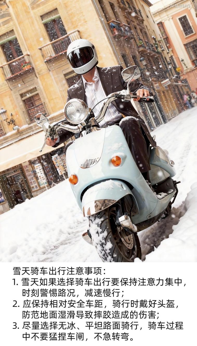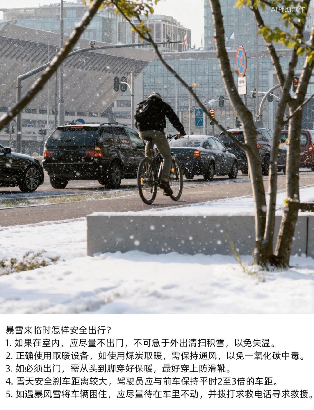 1. 雪天如果选择骑车出行要保持注意力集中,时刻警惕路况,减速慢行;