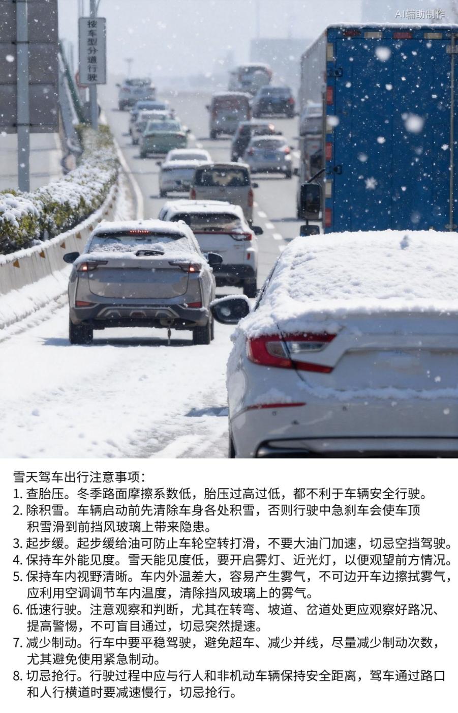 4. 雪天安全刹车距离较大,驾驶员应与前车保持平时2至3倍的车距。