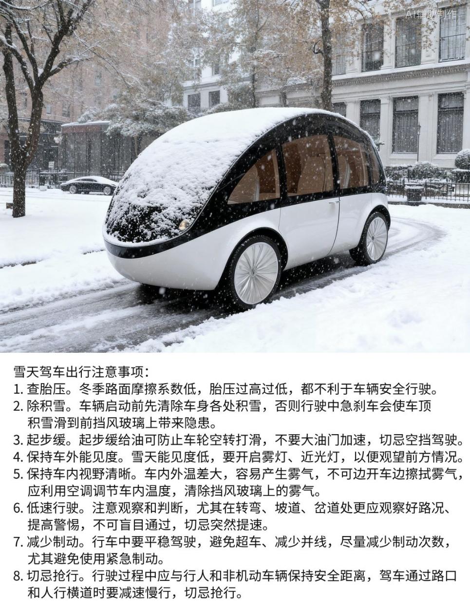 2. 除积雪。车辆启动前先清除车身各处积雪,否则行驶中急刹车会使车顶积雪滑到前挡风玻璃上带来隐患。