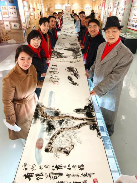 观众欣赏《翰墨连缘•众贤雅集长卷》并合影