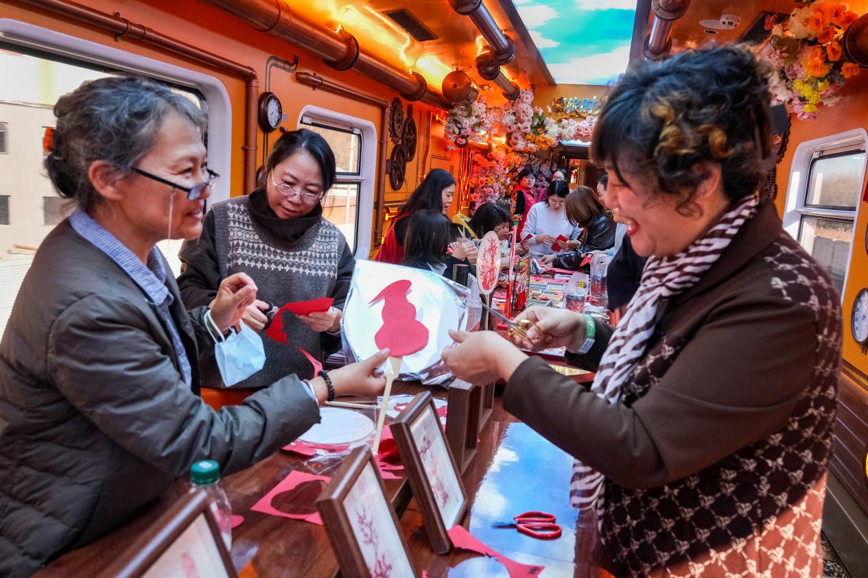 旅客在“津旅时光号”上体验非遗。杨宝森/摄