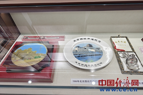 北京西站展示馆展示的北京西站纪念品。中国经济网记者佟明彪/摄