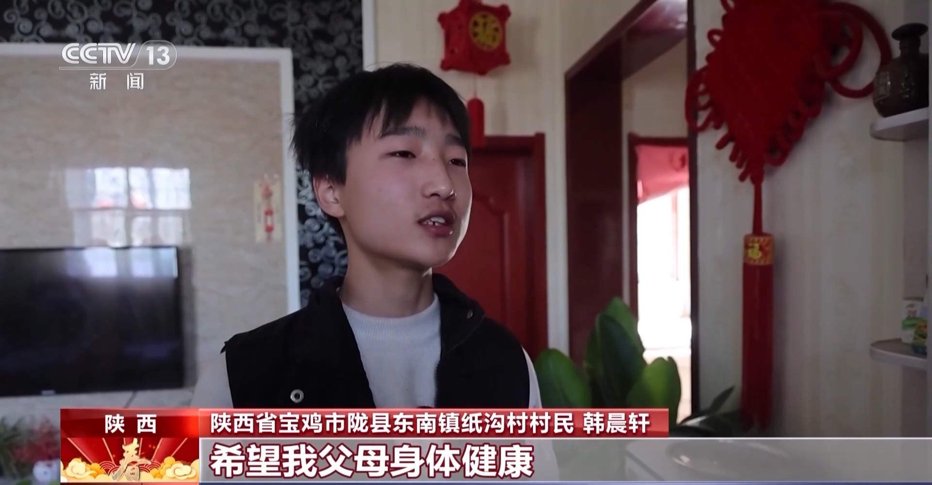 陕西省宝鸡市陇县东南镇纸沟村村民 韩晨轩:我今年披红,希望我父母身体健康,希望我哥工作顺利,希望我考上好高中。