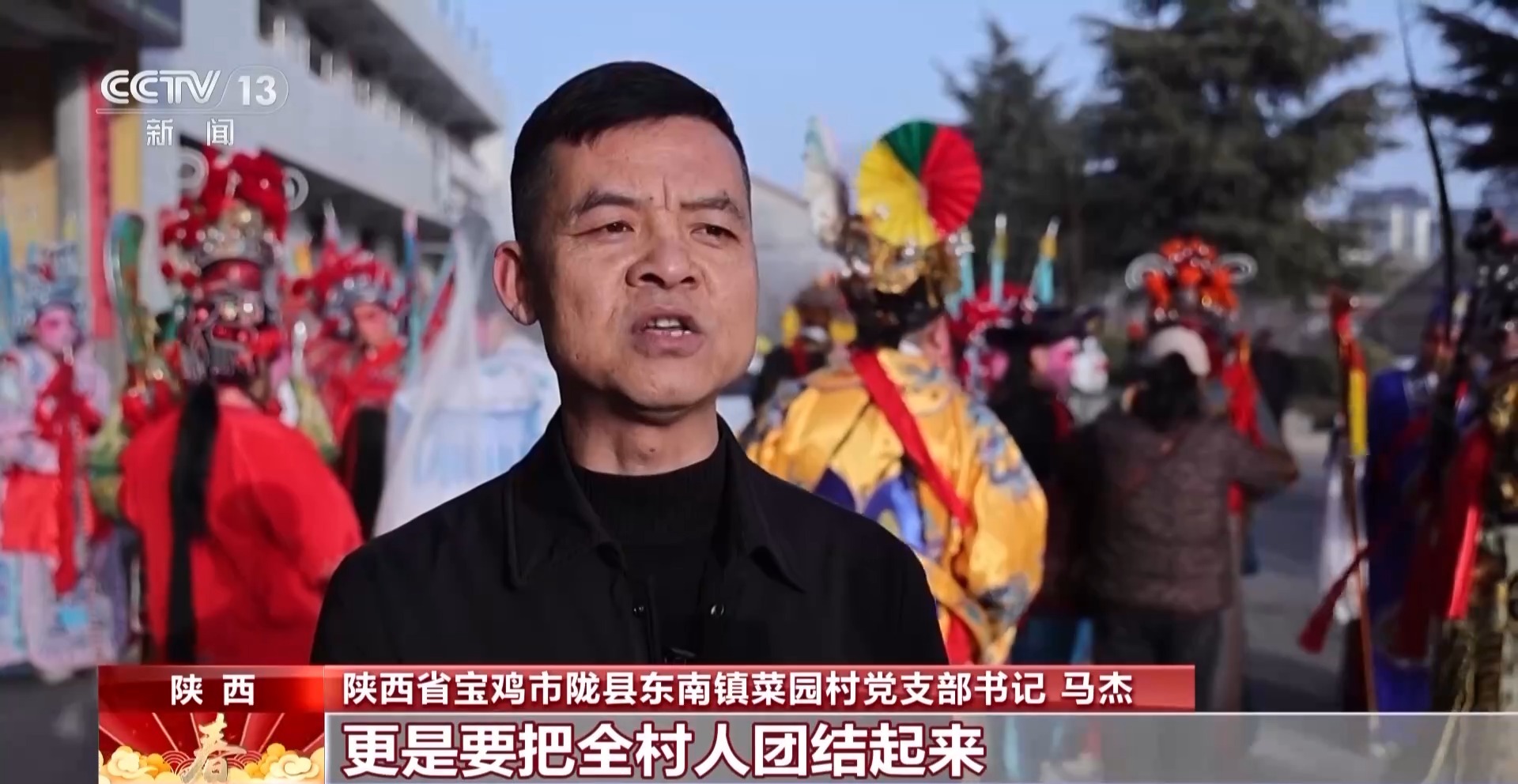 陕西省宝鸡市陇县东南镇菜园村党支部书记 马杰:过年耍社火不光是图个过年热闹,更是要把全村人团结起来。老人传技艺、中年挑大梁、娃娃学本领,也让村子凝心聚力奔向好日子。