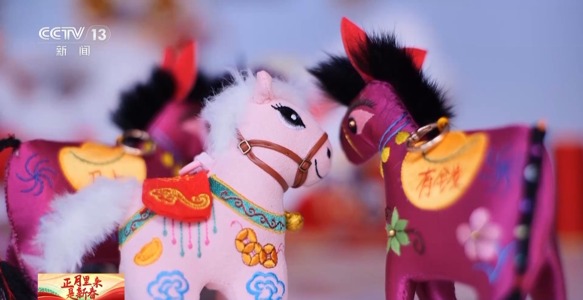 今年受欢迎的不只是马社火的袍服,就连巡游的骏马都被做成非常可爱的挂饰,成为爆款。小马挂饰身上的刺绣花纹和袍服上的绣法同出一脉,都是源自传承千年的国家级非遗——西秦刺绣。这是一门源于生活、代代相传的老手艺。