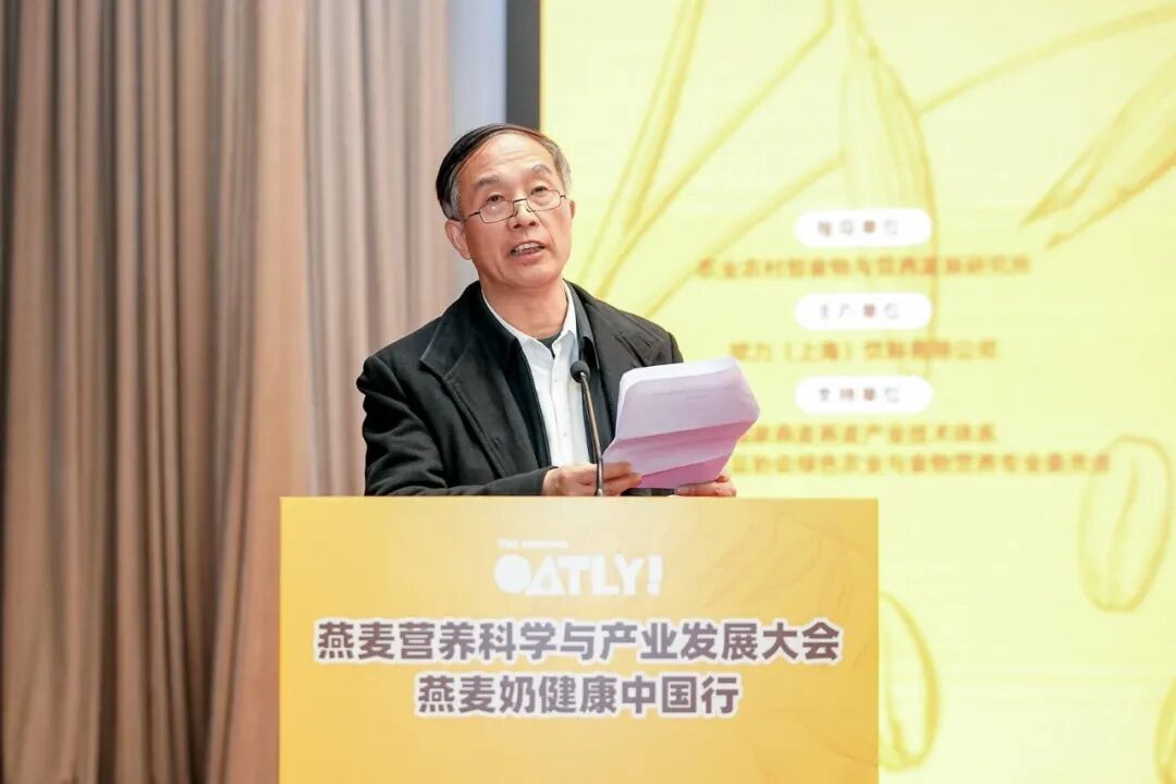 在专家号召环节,中国农业大学范志红教授围绕“燕麦纤维的健康益处”展开分享,指出国人膳食纤维摄入严重不足,而燕麦富含膳食纤维尤其是β-葡聚糖,兼具控血糖、护心血管等多重健康益处;中国中医科学院代金刚研究员从传统养生视角探讨了燕麦奶的现代应用,认为其性平味甘,具有健脾益气之效;陕西师范大学胡新中教授将高品质燕麦奶的特征总结为“五高三低”,即高膳食纤维、高β-葡聚糖、高必需氨基酸、高矿物质、高多酚活性物质和低致敏性、低GI、低碳足迹。
