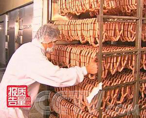 主持人:肉肠是我们菜篮子里少不了的好东西,也是近几年消费者反映问题比较多的食品。前一段时间,我们栏目曾报道过个别企业用病死猪肉和过期变质的回收肠制作加工肉肠的情况,有五家违规企业也因此被关闭停产。最近,我们的记者又调查了江苏的一家大型肉肠加工企业,我们来看看他们是怎样生产肉肠的。