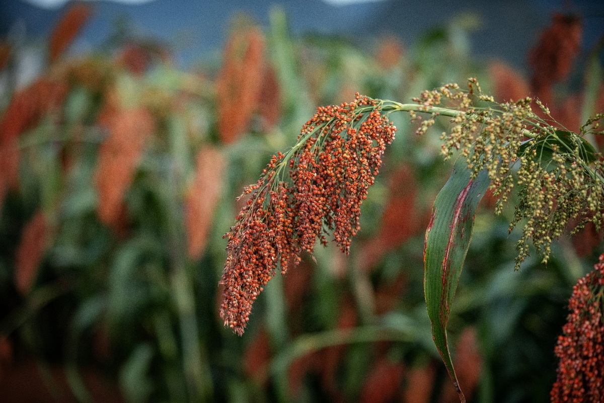 贵州当地红缨子糯高粱丰收。
