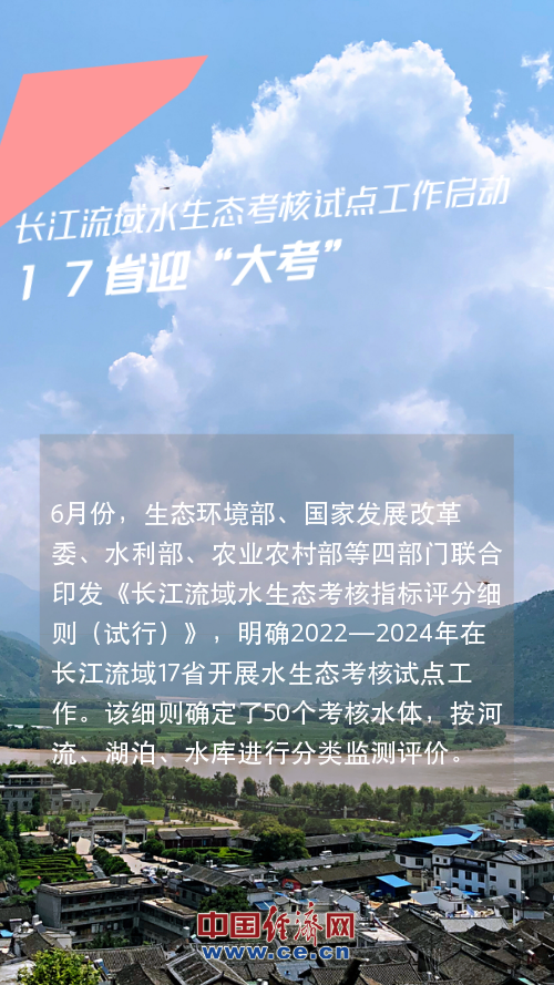 6月份,生态环境部、国家发展改革委、水利部、农业农村部等四部门联合印发《长江流域水生态考核指标评分细则(试行)》,明确2022—2024年在长江流域17省开展水生态考核试点工作。该细则确定了50个考核水体,按河流、湖泊、水库进行分类监测评价。【详情】