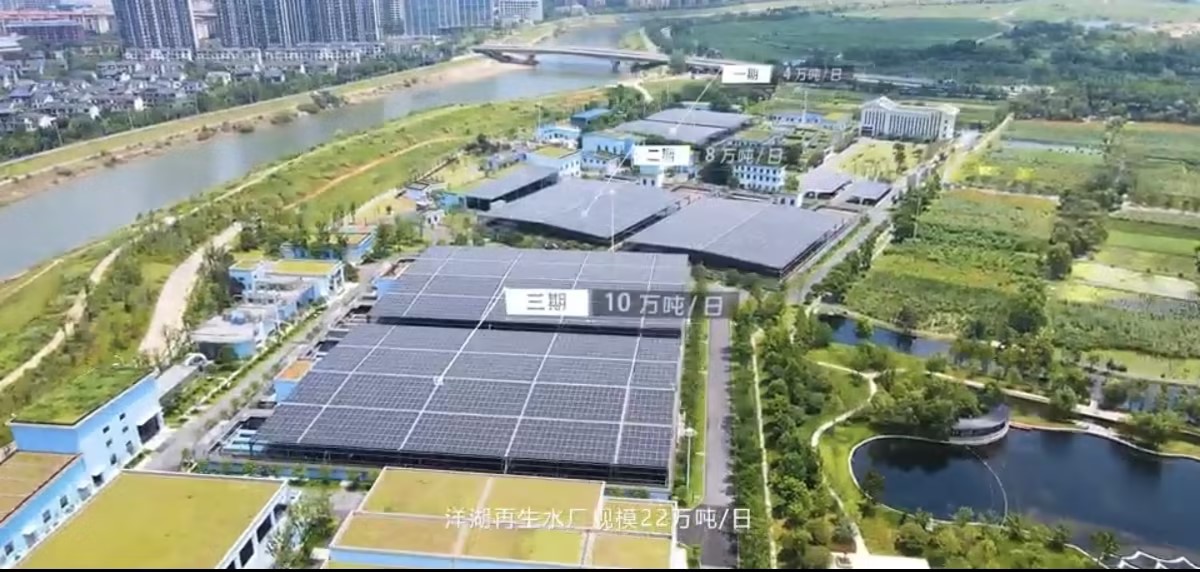 同时,洋湖生态新城作为长沙市湘江新区近零碳示范试点片区,还依托洋湖再生水厂布局一系列绿色产业项目,打造了洋湖零碳示范园,探索全新的水资源管理和利用模式。示范园是全国首个依托城市污水处理厂,系统规划建设的集污水处理、人工湿地、城市湿地、中水厂、光伏电站、区域能源站、有机固废肥料厂等项目于一体的污水资源和能源循环利用示范园。