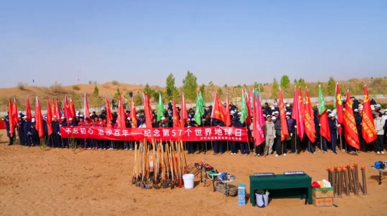中国经济网4月23日讯 4月22日,正值第57个世界地球日暨第二十二届库布其植树节,内蒙古库布其“绿水青山就是金山银山”实践创新基地同步联动腾格里沙漠、乌兰布和沙漠等“三北”工程沿线亿利资源集团治沙基地,举行“不忘初心,治沙百年”科技植树活动。