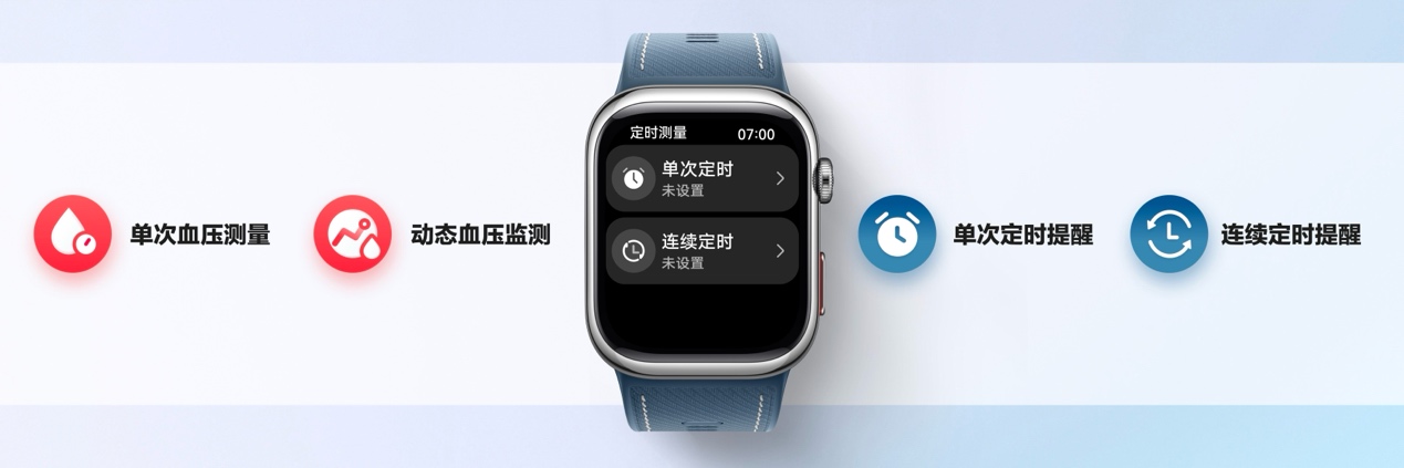 高血压作为典型慢性病,其诊断与管理对监测数据的完整性要求极高。《中国高血压防治指南》明确指出,动态血压监测是高血压诊断和评估降压效果的"金标准",这一行业共识凸显了长期连续监测的重要性。华为WATCH D2 支持医疗级单次与动态血压监测双模式,配合新增的单次定时提醒和连续定时提醒功能,让用户无论站着、坐着、睡着都能随时测量,真正实现全天全场景覆盖。