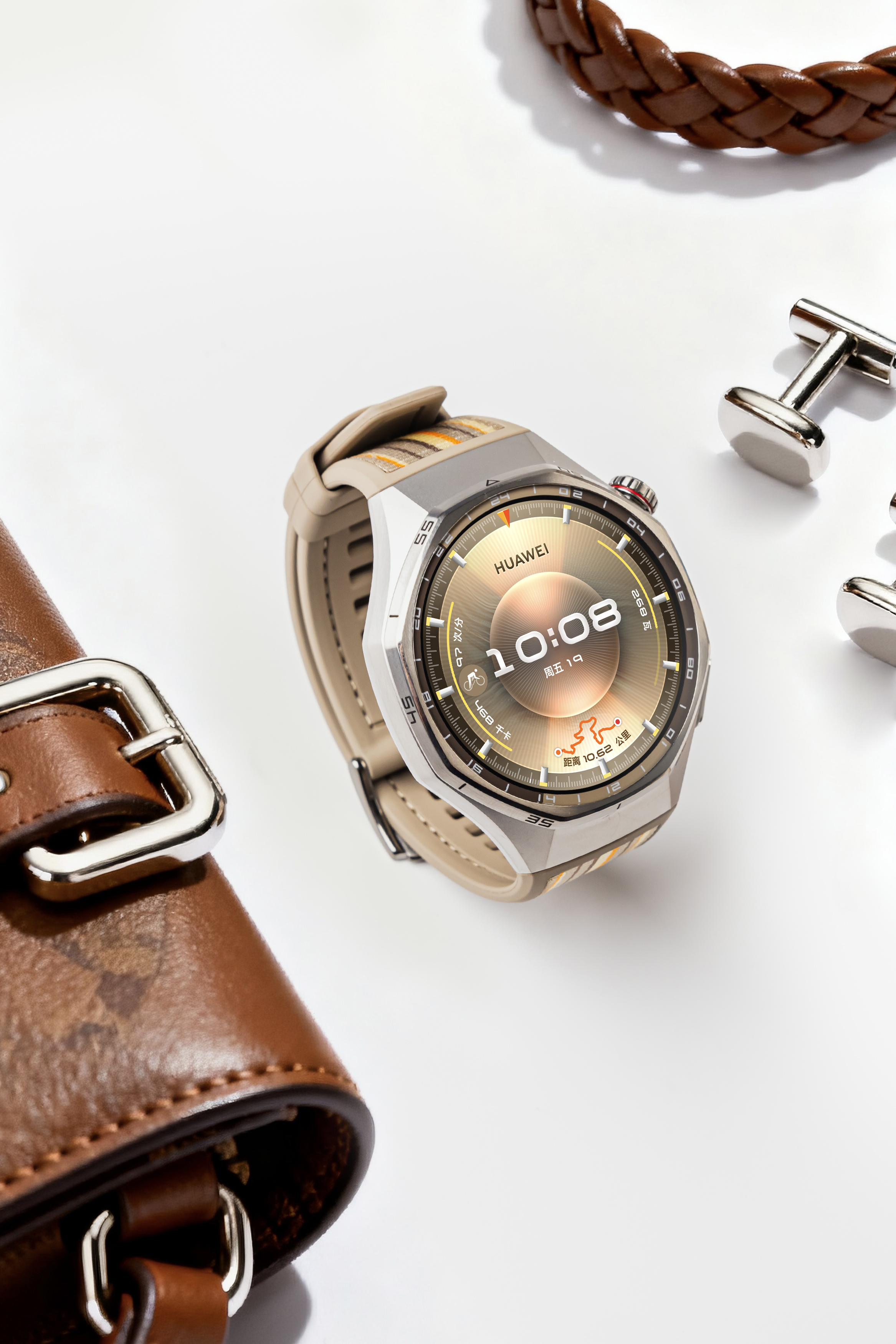 如果是追求仪式感的朋友可以看看华为WATCH十周年款。这款产品不仅在外观上细节拉满,还在智慧体验、运动健康等方面树立了科技标杆。全新设计+全新表盘,让华为WATCH十周年款更有收藏意义。表冠和表带内侧,可以看到“10 YEARS”的专属字样。材质选用了904L不锈钢、钛合金以及蓝宝石玻璃,硬朗抗造还高端,让人眼前一亮。