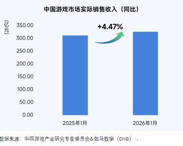 近日,伽马数据发布了《2026年1月中国游戏产业季度报告(完整版)》(以下简称报告),报告提到:2026年1月,中国游戏市场实际销售收入为324.68亿元,环比增长2.99%,同比增长4.47%。中国游戏产业首席分析师王旭表示,环比层面,市场延续2025年末以来的稳健走势,头部常青游戏持续发挥收入压舱石作用,叠加部分新品上线后用户活跃度与付费表现良好,共同支撑短期增长;同比层面,增速较前期略有收窄,但仍维持连续正增长态势,反映出行业在政策适配、产品迭代与用户运营深化背景下,已逐步进入结构性趋稳阶段。