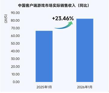 细分市场中,中国客户端游戏市场实际销售收入达82.36亿元,环比增长7.77%,同比增长23.46%,增速高于整体游戏市场。王旭分析,增长主要由新品供给驱动:《明日方舟:终末地》《逆战:未来》等双端新品上线,二者共带来超5亿元增量,其中《明日方舟:终末地》国内市场PC端流水占比近60%,该作以高配置需求、键鼠操作深度及长线内容设计锚定硬核PC用户,使得客户端成为重要收入来源。