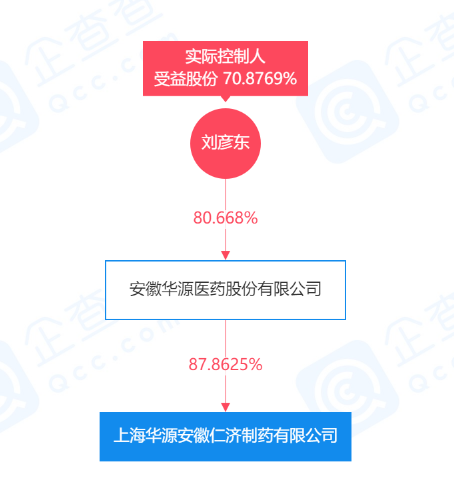 企查查显示,上海华源安徽仁济制药有限公司为安徽华源医药集团所属企业。在股权方面,安徽华源医药集团股份有限公司持有上海华源安徽仁济制药有限公司87%以上的股权。