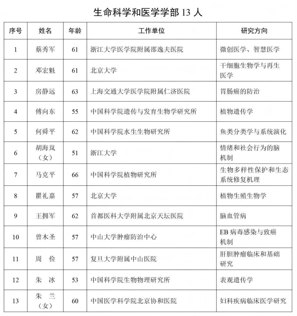 两院院士增选结果发布,生命科学与医药卫生领域21位学者当选