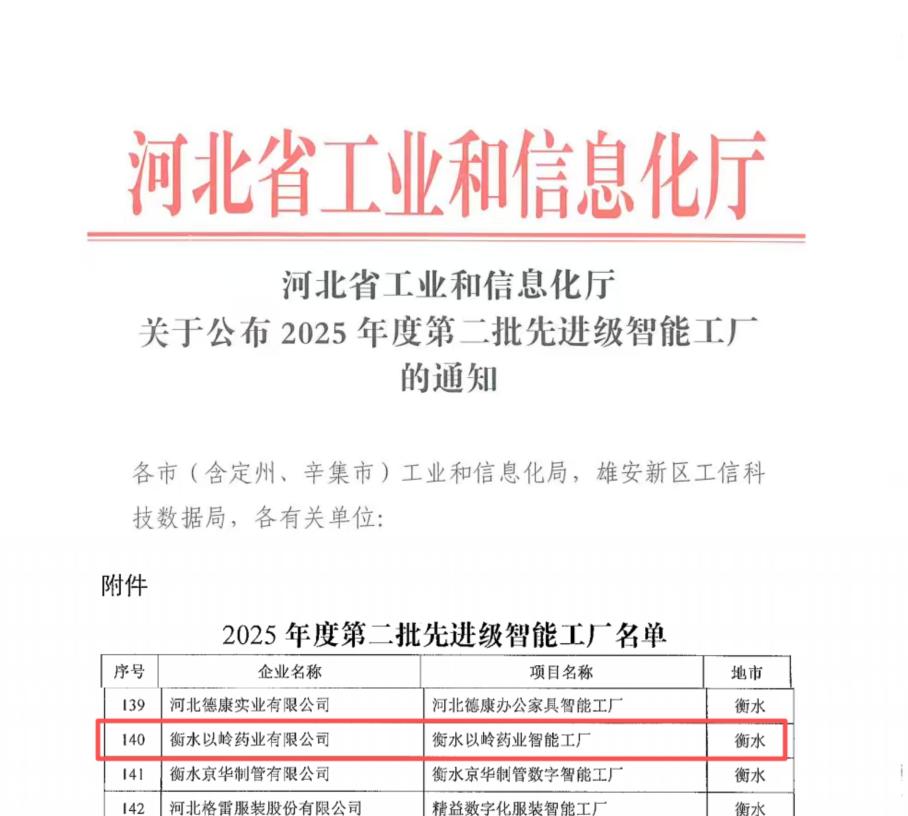 近日,河北省工业和信息化厅正式公布2025年度第二批先进级智能工厂名单,衡水以岭药业凭借其在中医药生产领域的智能化、数字化创新实践成功入选,标志着其在现代化智能制造转型道路上迈入省级先进梯队。