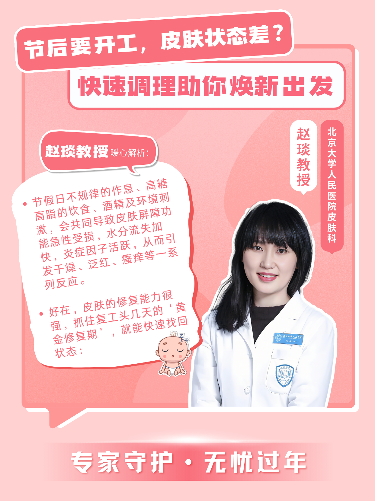 “节假日劳累、作息紊乱确实容易诱发或加重特应性皮炎症状,这与免疫状态波动及皮肤屏障功能暂时下降有关。别着急,年初一的‘面子工程’可以快速补救,记住三个关键步骤: