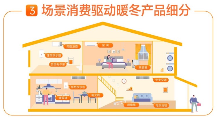 随着人们对生活品质追求的提升,取暖场景不断扩展,进一步推动取暖产品的细分和迭代。比如,暖菜板、即饮热水机和电火锅是冬日厨房好物。水暖毯正逐渐取代传统电热毯,与空调、取暖器成为卧室的热门单品。