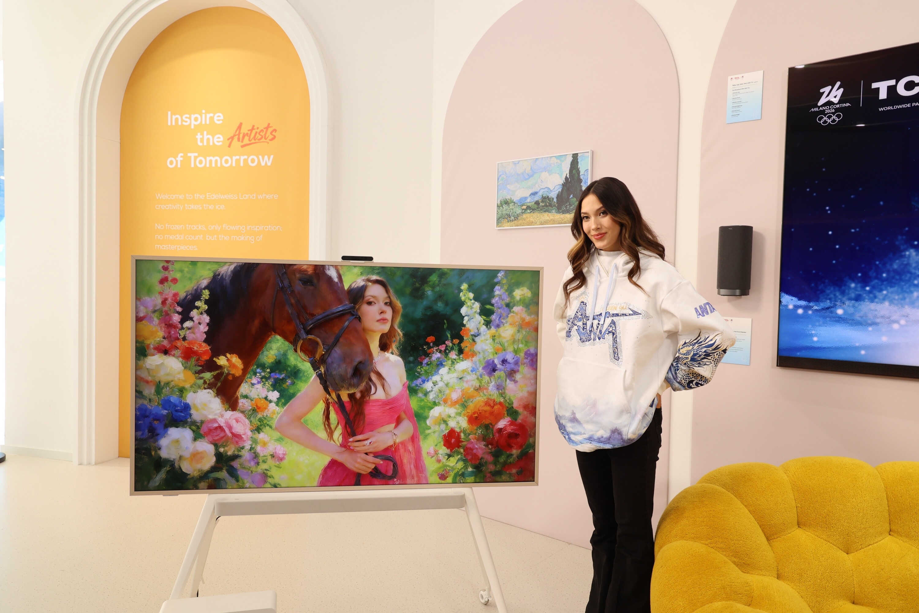 当地时间2月23日,TCL全球品牌代言人谷爱凌参观TCL“雪绒奇境”米兰冬奥主题展馆,并与现场粉丝和媒体互动。值得注意的是,这是谷爱凌本届冬奥会后首次亮相,也是她在本届冬奥会赛后参与的唯一一场媒体粉丝互动活动。