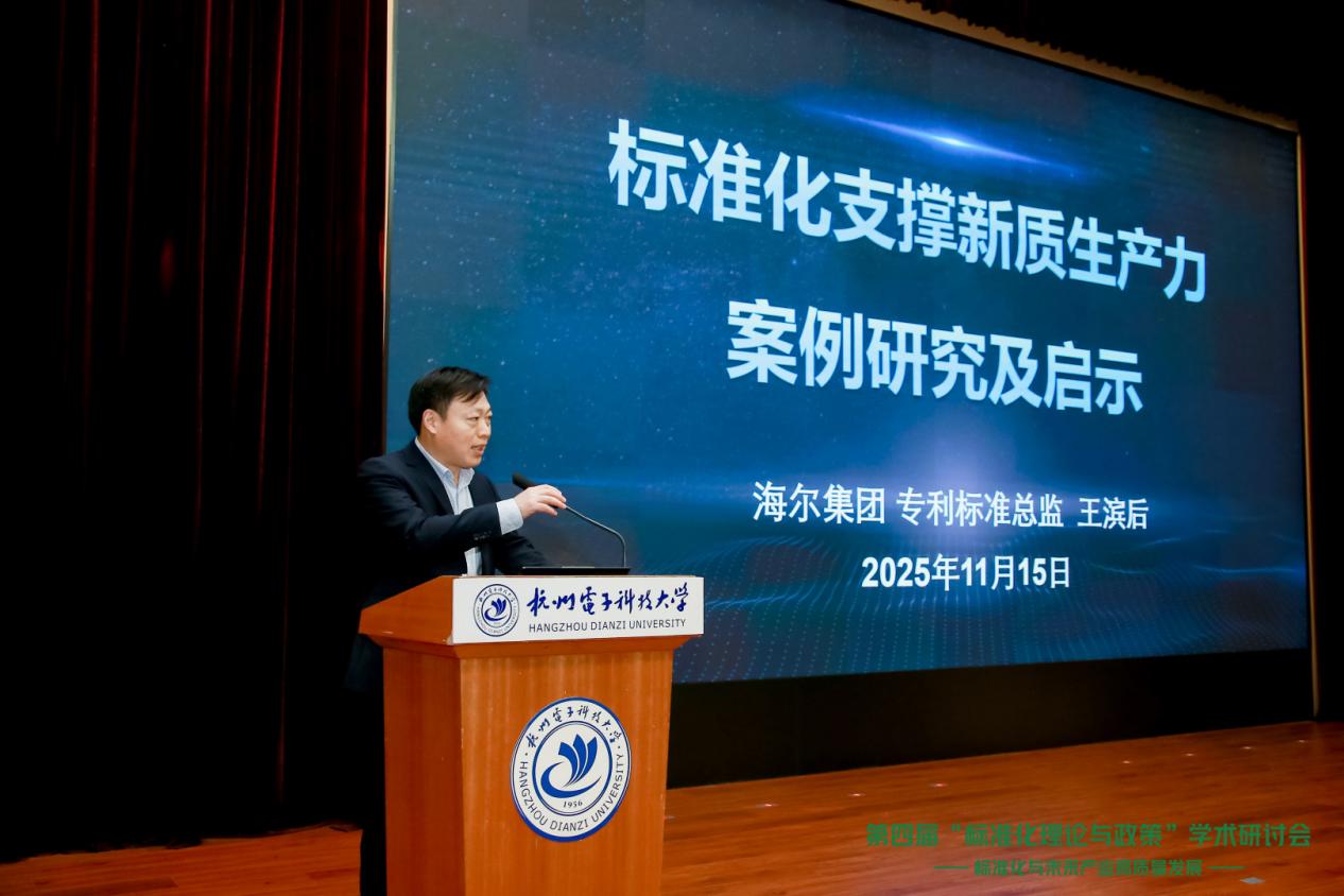 海尔集团标准专利总监王滨后以“标准支撑新质生产力”为主题,分享海尔在标准情报体系构建、“技术 - 专利 - 标准”联动、全球协同标准实践等方面的案例,为企业提供宝贵启示;