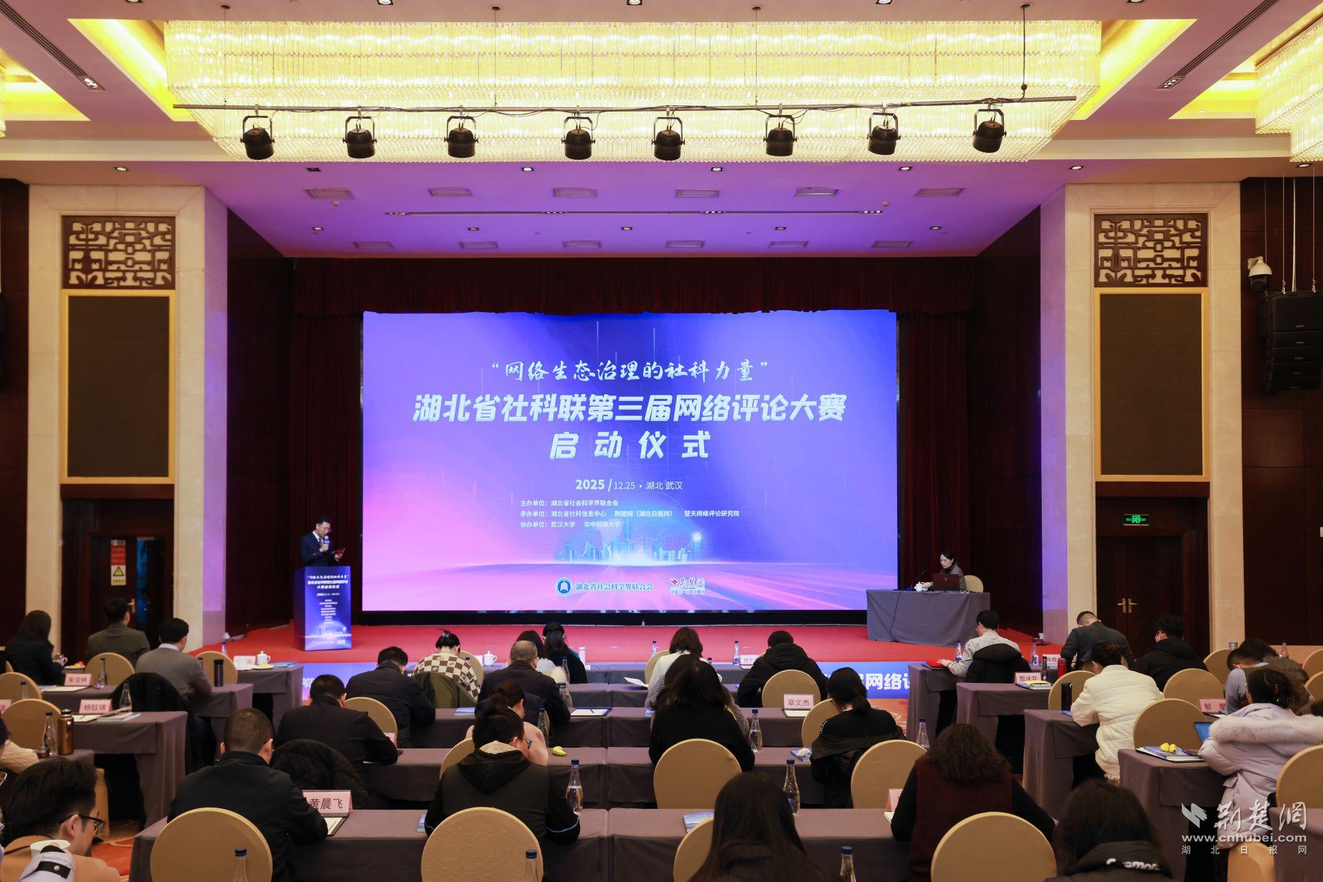 荆楚网(湖北日报网)讯 (记者 丁楚风)冬日蓄势,春潮待发。12月25日,武汉楚天粤海国际大酒店内暖意融融,思想的火花在这里迸发碰撞。由湖北省社会科学界联合会主办,湖北省社科信息中心、荆楚网(湖北日报网)、楚天网络评论研究院承办的“网络生态治理的社科力量”——湖北省社科联第三届网络评论大赛正式启动。