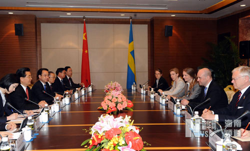 中国国家主席胡锦涛会见瑞典首相赖因费尔特(图)