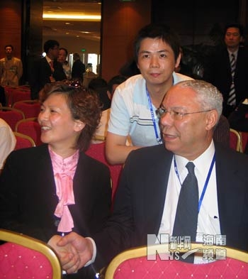 13日上午,美国前国务卿鲍威尔出现在博鳌亚洲论坛2008年年会一个关于“未来的互联网”话题的分会上。对于大部分参会者而言都是第一次见到这位美国历史上首位黑人国务卿,因此鲍威尔除了被来自媒体的摄影记者包围外,还被许多人要求来一张合影。一开始,鲍威尔愉快地接受了合影者的邀请,但是随着要求合影的人越来越多,鲍威尔不得不连说抱歉,匆匆离开座位。