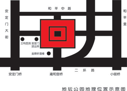 乘地铁到雍和宫或安定门站;乘公交车13、116、62、44、117、909、800、807、820、特2路汽车到地坛南门,104、108、124路电车或27、104快、358、119、407、328、803、18、850、113、858、644、643到地坛西门。